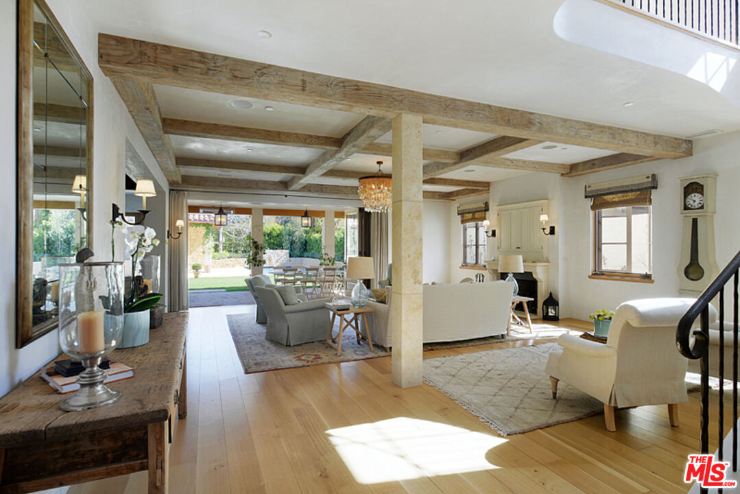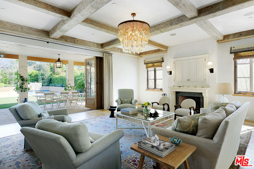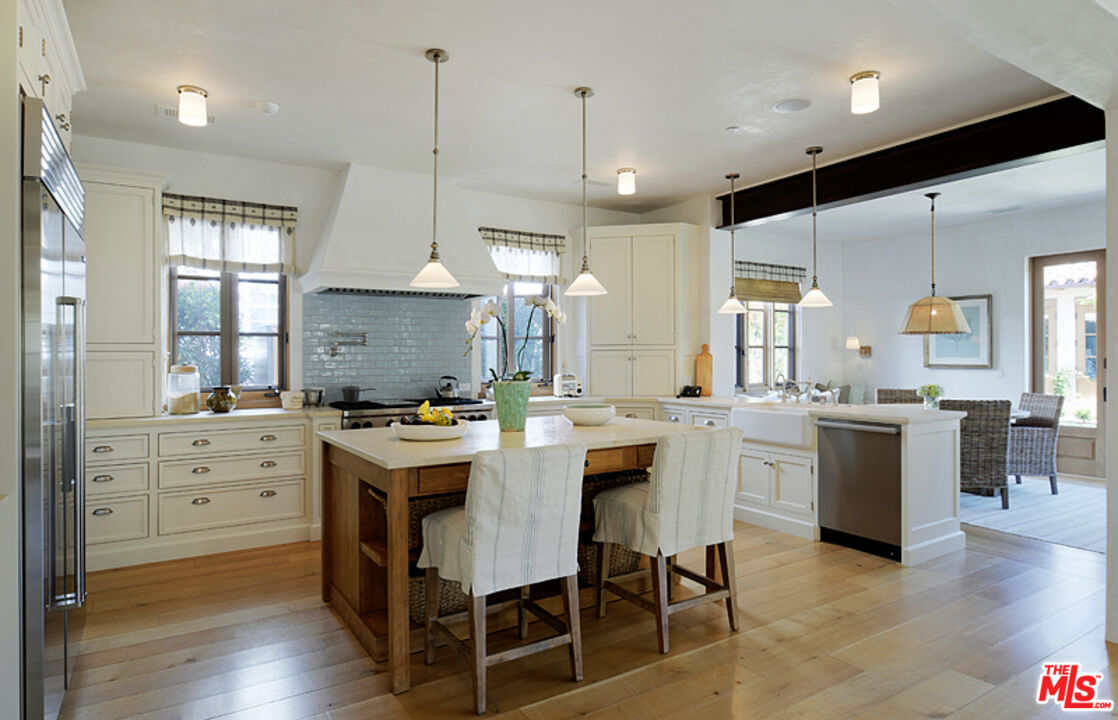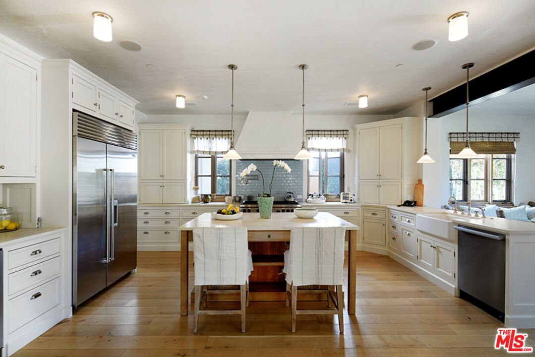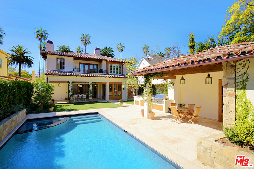 Located North of Montana Avenue. This unique home includes top-of-the-line landscaping and a fountain greeting you upon arrival. Entering the home, you immediately feel the comforts of resort-style living, complete with an indoor/outdoor flow. 1st floor features a den, formal dining room, living room with fireplace, open kitchen with top-of-the-line finishes, Sub-Zero refrigerator, built-in wine fridge, custom cabinets with plenty of storage space, separate pantry, and breakfast nook. 2nd floor offers a spacious master suite with a fireplace, a large deck, a private office area, as well as, a large walk-in closet. Large master bath with dual sinks, separate shower, and generous tub. The 2nd & 3rd bedrooms have beautiful natural light complete with en suite bathrooms. Wonderful backyard with saline pool and waterfall, built-in BBQ & two patio areas. Detached recording studio complete with a 3/4 bath designed by a famous music composer.
